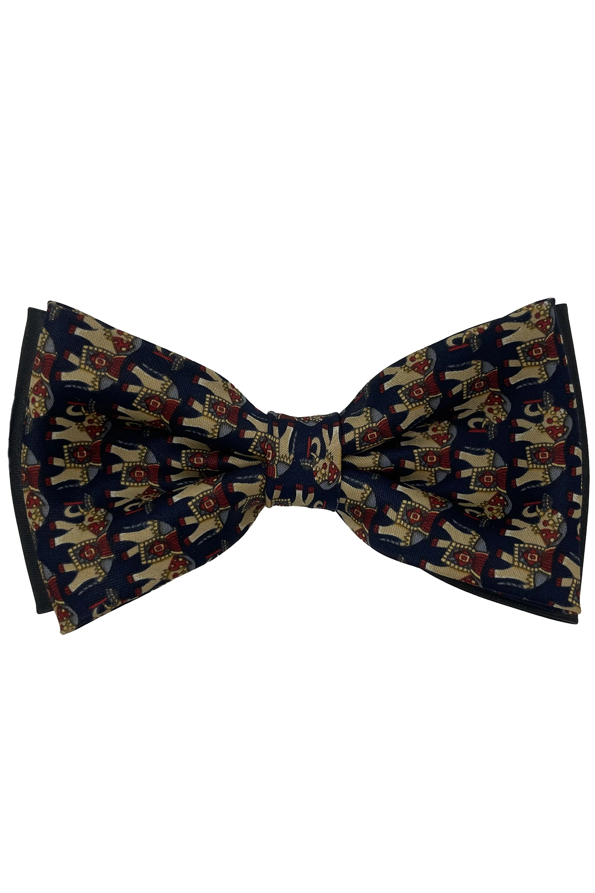La Pajarita diseño único elefantes modelo Suerte es el complemento perfecto para quienes desean destacar con un estilo original, elegante y lleno de personalidad. Inspirada en la simbología de los elefantes como portadores de fortuna, prosperidad y protección, esta pajarita combina tradición, significado y moda en una pieza ideal para ocasiones especiales. Su diseño exclusivo, con un patrón repetido de elefantes en combinación de tonos azul marino, beige y detalles en rojo, la convierte en un accesorio llamativo, sofisticado y diferente a cualquier otra pajarita convencional.